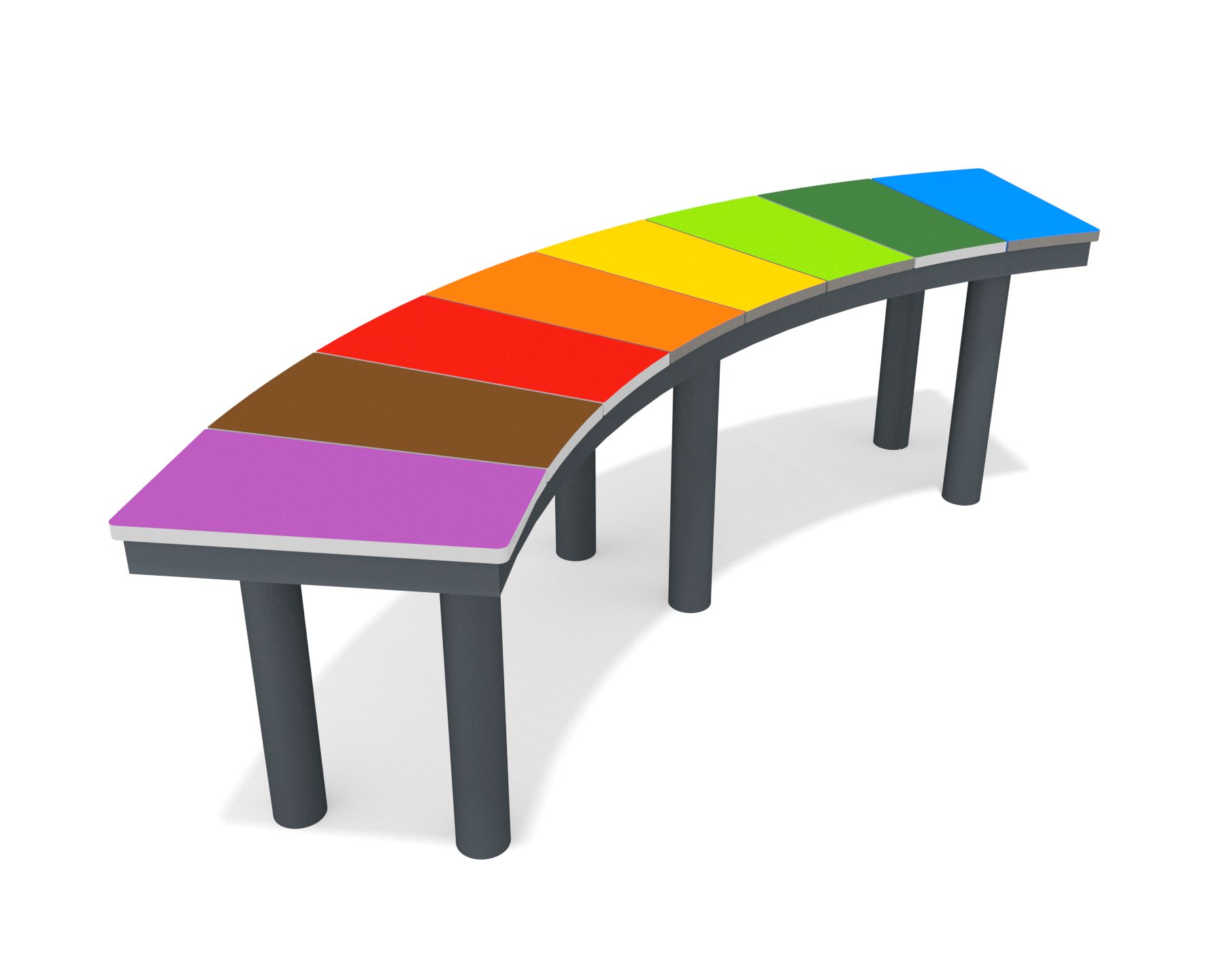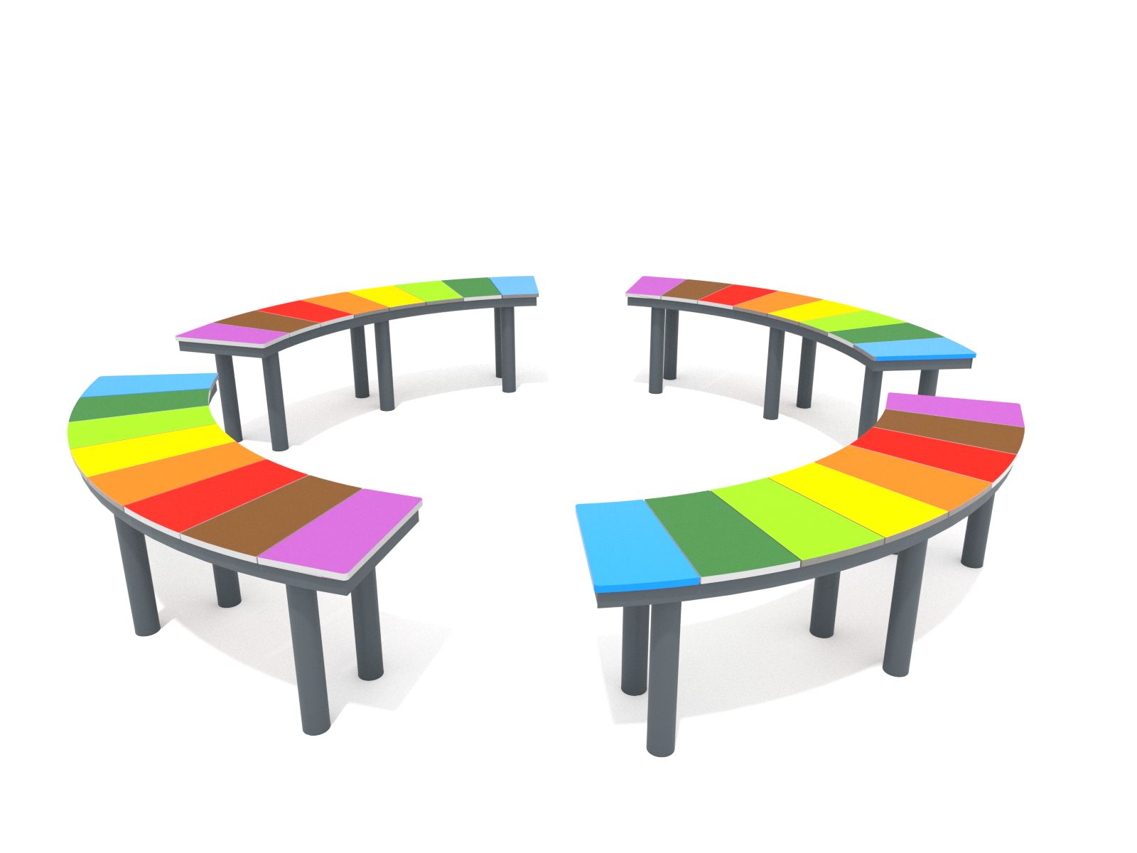 Banco curvado sem encosto, em polietileno de alta qualidade, totalmente à prova de humidade e resistente aos UV.