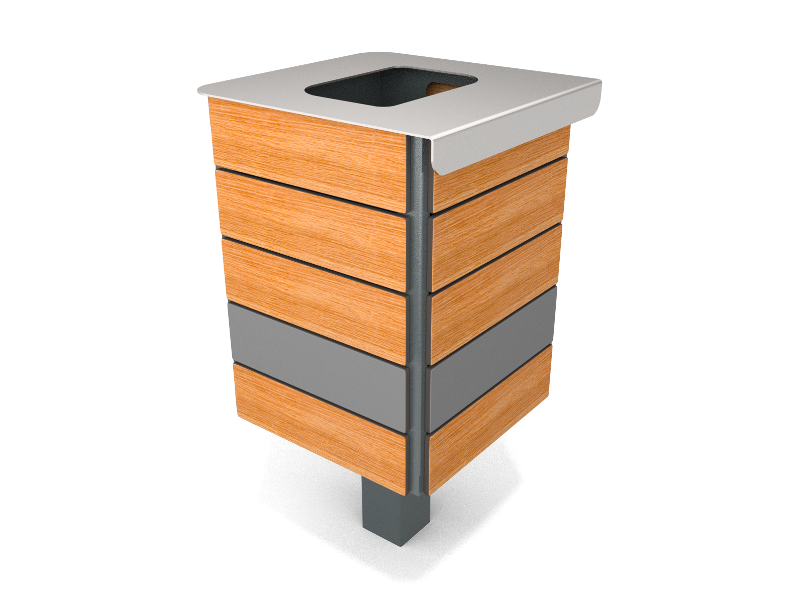 Caixote de lixo para parques, feito com materiais resistentes, garantindo durabilidade e conforto de utilização.