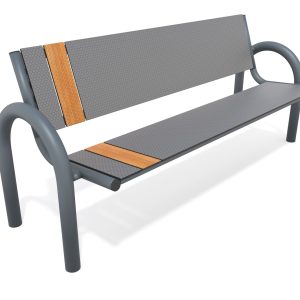 Conjunto de bancos e mesa para parques em HPL, com uma resistência muito elevada às condições climáticas e ao atrito.